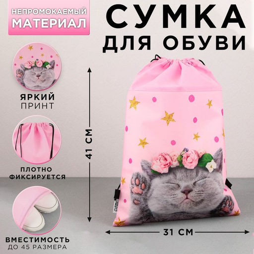 Сумка для обуви Очаровательный котёнок, нетканное полотно, размер 41х31 см
