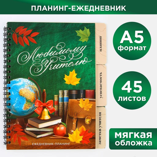 Планинг-ежедневник Любимому учителю, формат А5, 45 листов, мягкая обложка на спирали с разделителями