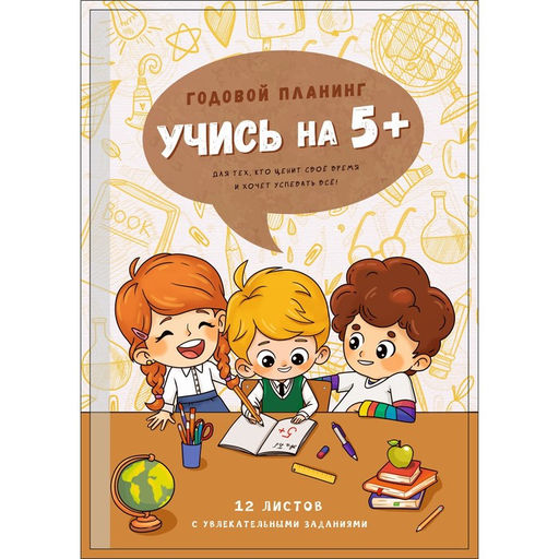 Планинг недатированный А4, 12 листов, на гребне, мягкая обложка, "Учись на 5+"