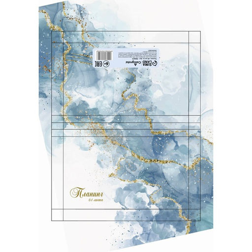 Планинг недатированный A6, 64 листа, на сшивке, обложка из картона, матовая ламинация, выборочный лак, Мрамор голубой