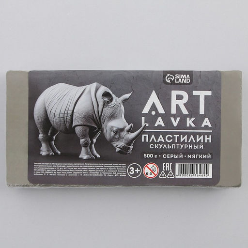 Пластилин скульптурный ARTLAVKA СЕРЫЙ мягкий 500 гр