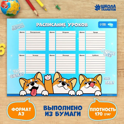 Цена за 10 шт. Расписание уроков Корги Джекки А3