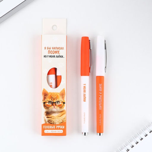 Ручка гелевая Я бы написал поэму, но у меня лапки 2 шт, чёрная паста