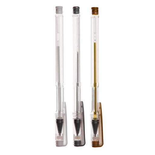 Набор гелевых ручек 3 цвета, белый, серебристый, золотой, корпус прозрачный