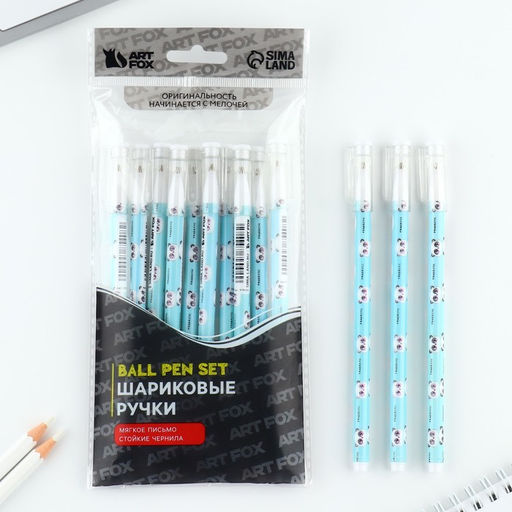 Цена за 10 шт. Ручка пластик шариковая, синяя паста, 0,5 мм Пандастик