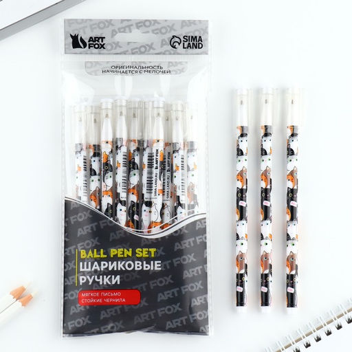 Цена за 10 шт. Ручка пластик шариковая, синяя паста, 0,5 мм Котики