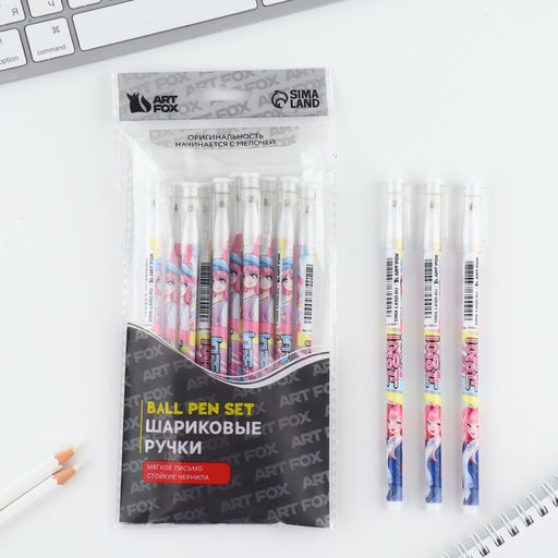 Цена за 10 шт. Ручка пластик шариковая, синяя паста, 0,5 мм Кавай