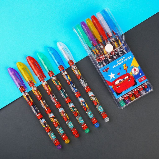 Набор гелевых ручек с блёстками, 6 цветов, Тачки