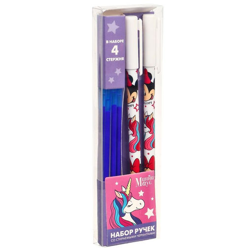 Набор ручек со стираемыми чернилами,2 шт + 4 стержня, Единорог, Минни Маус