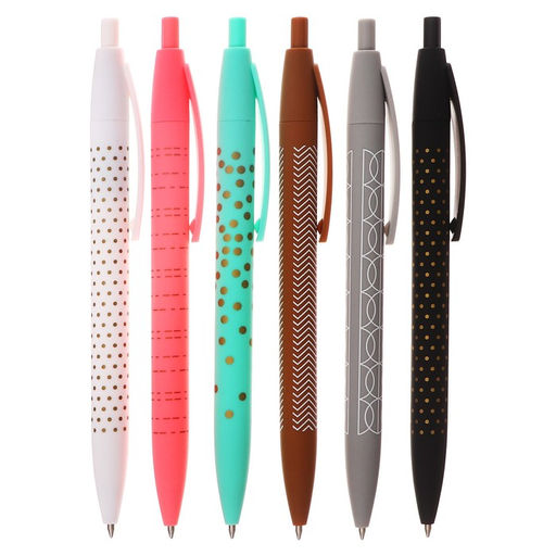 Набор 6 шт. Ручка шариковая автоматическая 0,5мм синяя, корпус с рисунком МИКС прорезиненный