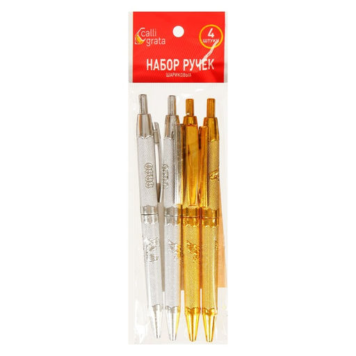 Набор ручек шариковых, 4 штуки, автоматические, стержень синий, МИКС