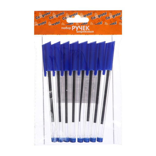 Набор ручек шариковых 8 штук, стержень 1,0 мм синий, корпус треугольный, прозрачный
