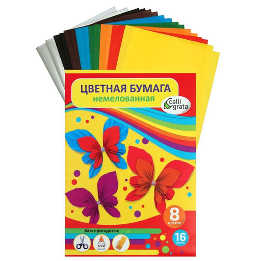 Бумага цветная А4, 16 листов, 8 цветов "Бабочки", волшебная (золото+серебро), газетная, в папке