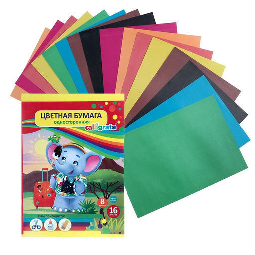 Бумага цветная А4, 16 листов, 8 цветов Calligrata, офсет, в папке