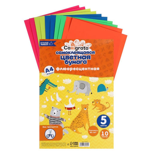 Бумага цветная самоклеящаяся А4, 10 листов, 5 цветов, флуоресцентная, 80 г/м2