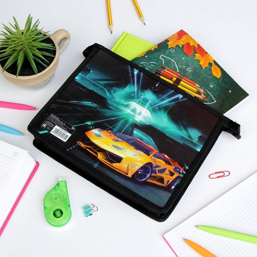 Папка для тетрадей А5, 190 х 230 х 50 мм, молния сверху, пластиковая, Calligrata "Тачка"