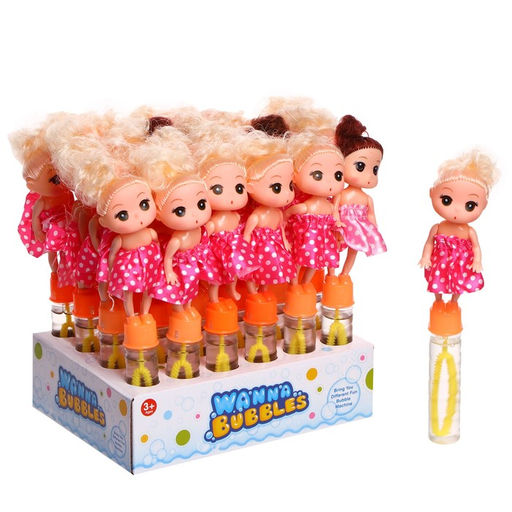 Цена за 24 шт. Мыльные пузыри Кукла тёмная 2,5х2,5х19,5 см