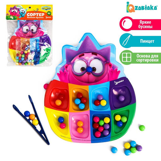 Сортер Смешарики: Весёлые бусинки, 8 цветов, с пинцетом, по методике Монтессори