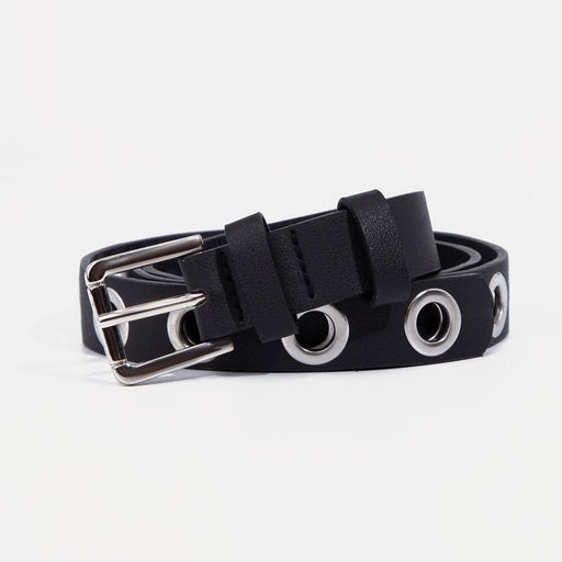 Ремень женский, ширина 2,4 см, пряжка металл, люверсы, цвет чёрный