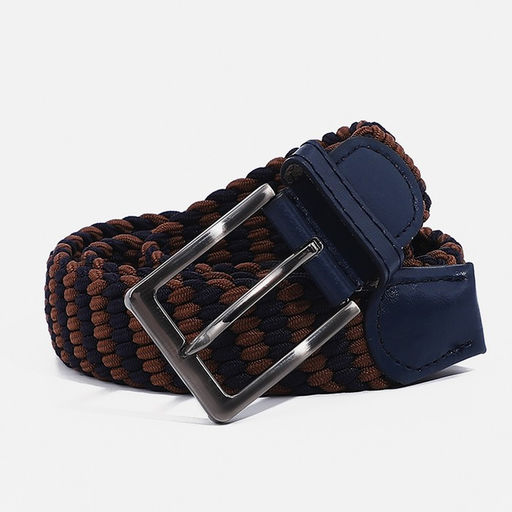 Ремень, ширина 3.5 см, резинка, пряжка металл, цвет коричневый/синий