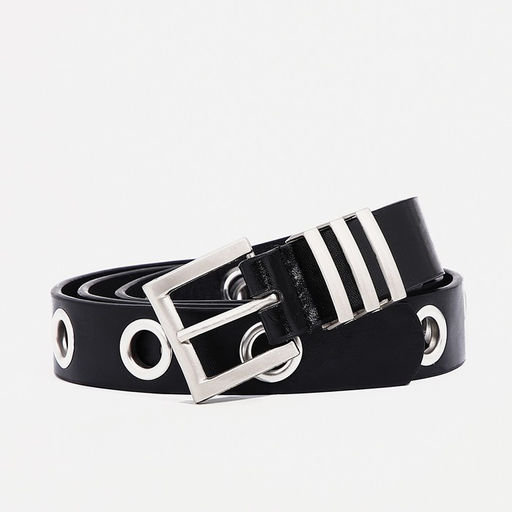 Ремень женский, ширина 2 см, пряжка металл, люверсы, цвет чёрный