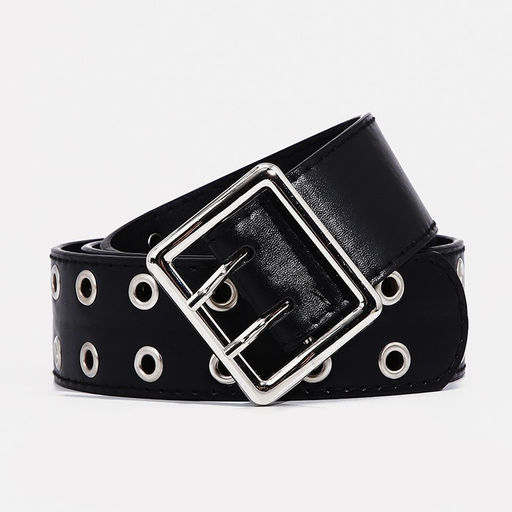 Ремень женский, ширина 4 см, люверсы, пряжка металл, цвет чёрный