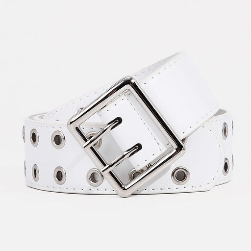 Ремень женский, ширина 4 см, люверсы, пряжка металл, цвет белый