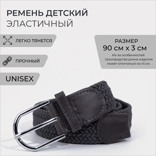 Ремень детский, ширина 3 см, пряжка металл, цвет серый