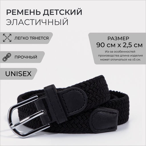 Ремень детский, ширина 2,5 см, пряжка металл, цвет чёрный