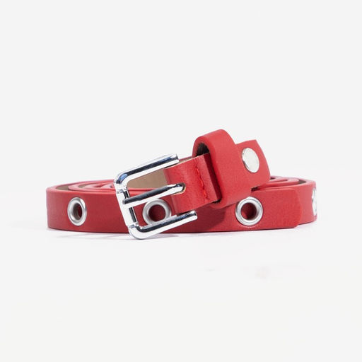 Ремень женский, ширина 1,5 см, винт, пряжка металл, люверсы, цвет красный