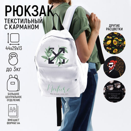 Рюкзак молодежный Nature, 29х13х44, отд на молнии, н/карман, белый