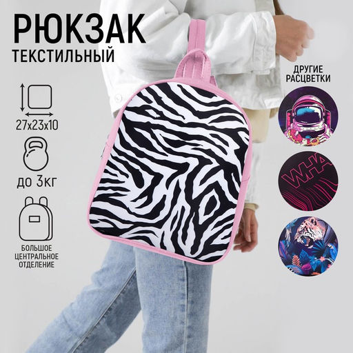 Рюкзак текстильный "Зебра", 27*10*23 см, розовый