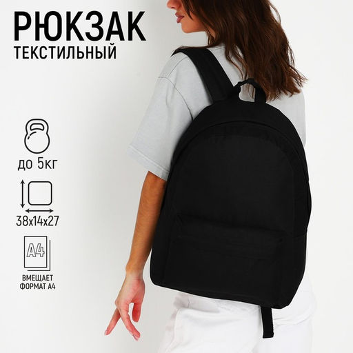 Рюкзак текстильный NAZAMOK, 38х14х27 см, цвет чёрный