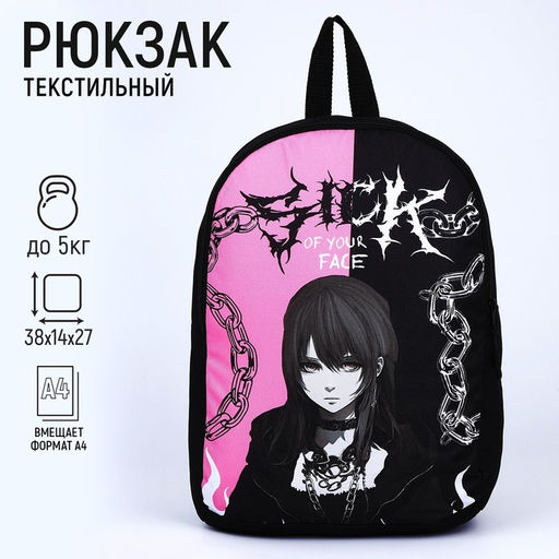 Рюкзак текстильный Аниме, 38х14х27 см, цвет чёрный, розовый