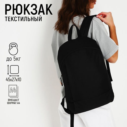Рюкзак текстильный 46х30х10 см, вертикальный карман, цвет чёрный