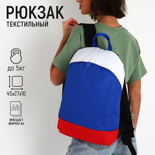 Рюкзак текстильный Россия, 46х30х10 см, вертик карман, цвет красный, синий, белый