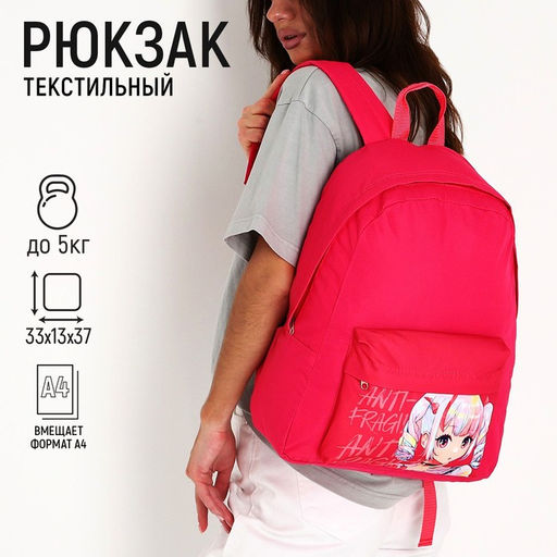 Рюкзак текстильный Аниме, с карманом, цвет розовый