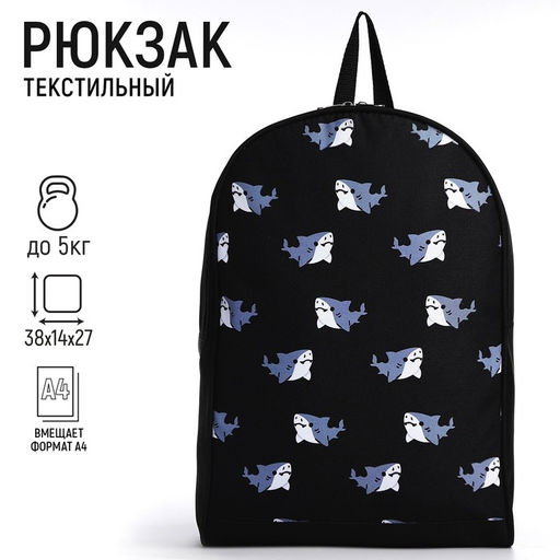 Рюкзак текстильный Акулы, 38х14х27 см, цвет чёрный