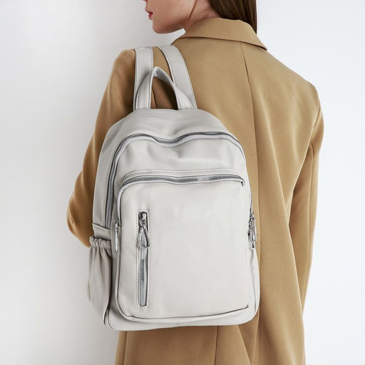 Рюкзак женский из искусственной кожи на молнии, 6 наружных карманов, цвет бежевый