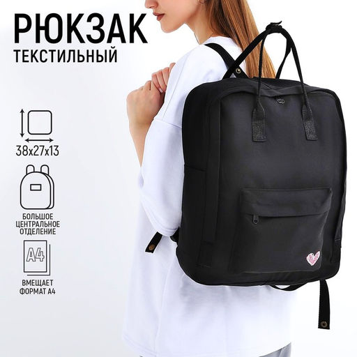 Рюкзак текстильный мамс "Love", 38х27х13 см, цвет черный