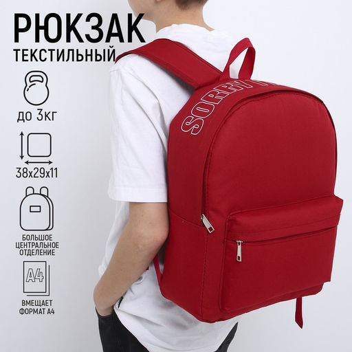 Рюкзак текстильный с печатью на верхней части SORRY, 38х29х11 см, бордовый