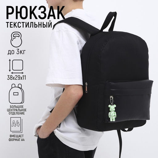 Рюкзак текстильный с карманом кожзам, 38х29х11 см, черный