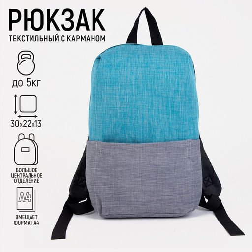 Рюкзак, отдел на молнии, наружный карман, цвет голубой/серый
