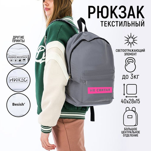 Рюкзак текстильный светоотражающий, Не святая, 42 х 30 х 12см