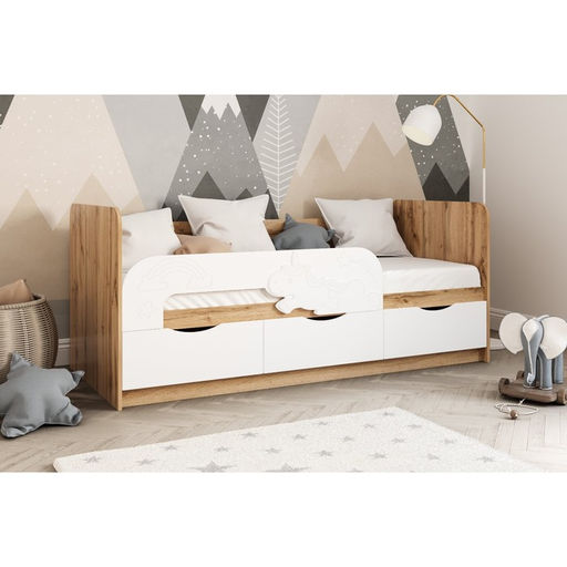 Кровать Долька с ящиками и бортом с/м 1800*800, Белая мат МДФ/Дуб вотан ЛДСП