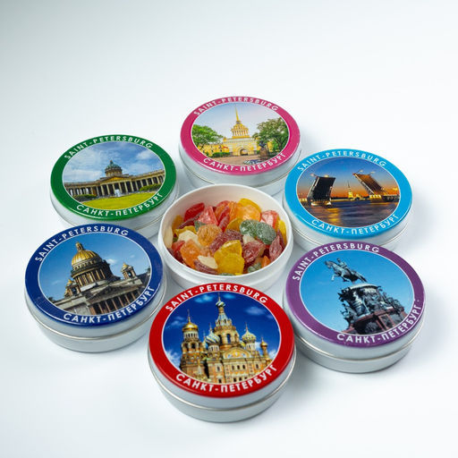 цена за 8шт Карамель Монпансье банка-жесть (виды СПб) 60 г