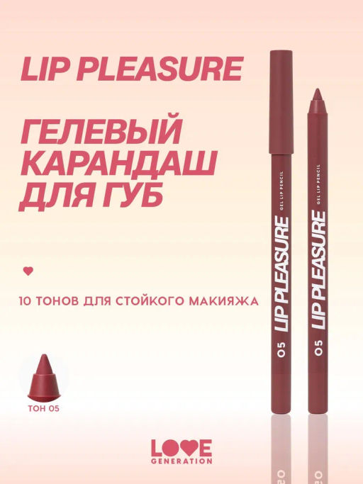 Love Generation Карандаш для губ гелевый Lip Pleasure тон 05 красно-коричневый