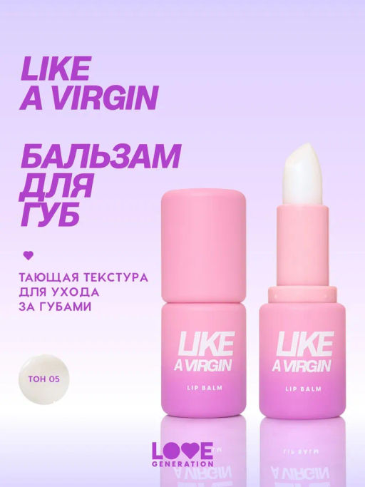 Love Generation Бальзам для губ Like a virgin тон 05 прозрачный с голубыми сияющими частицами