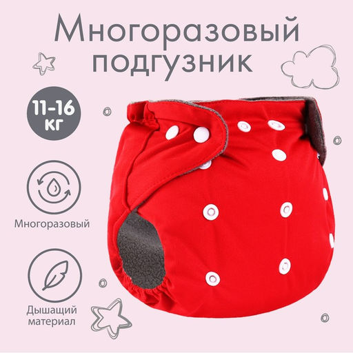 Трусики-подгузник, многоразовый, угольно-бамбуковая ткань, цвет красный, от 0-36 мес.