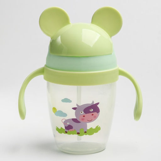 Поильник с силиконовой трубочкой 200 мл., с ручками, цвет МИКС